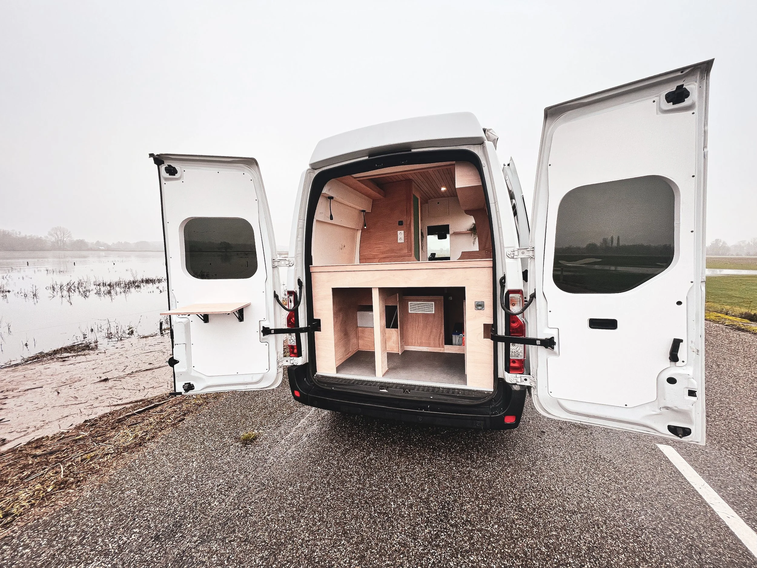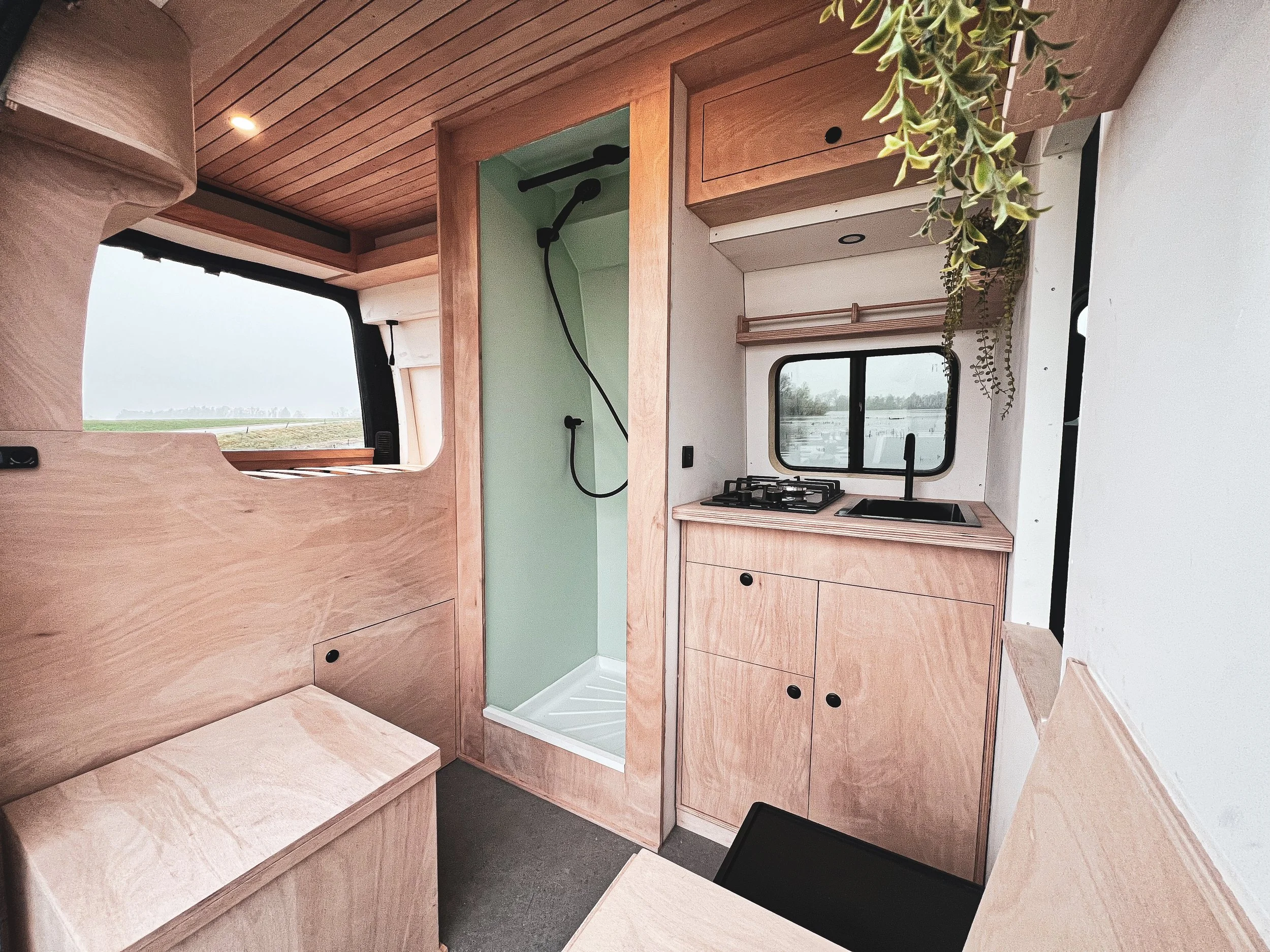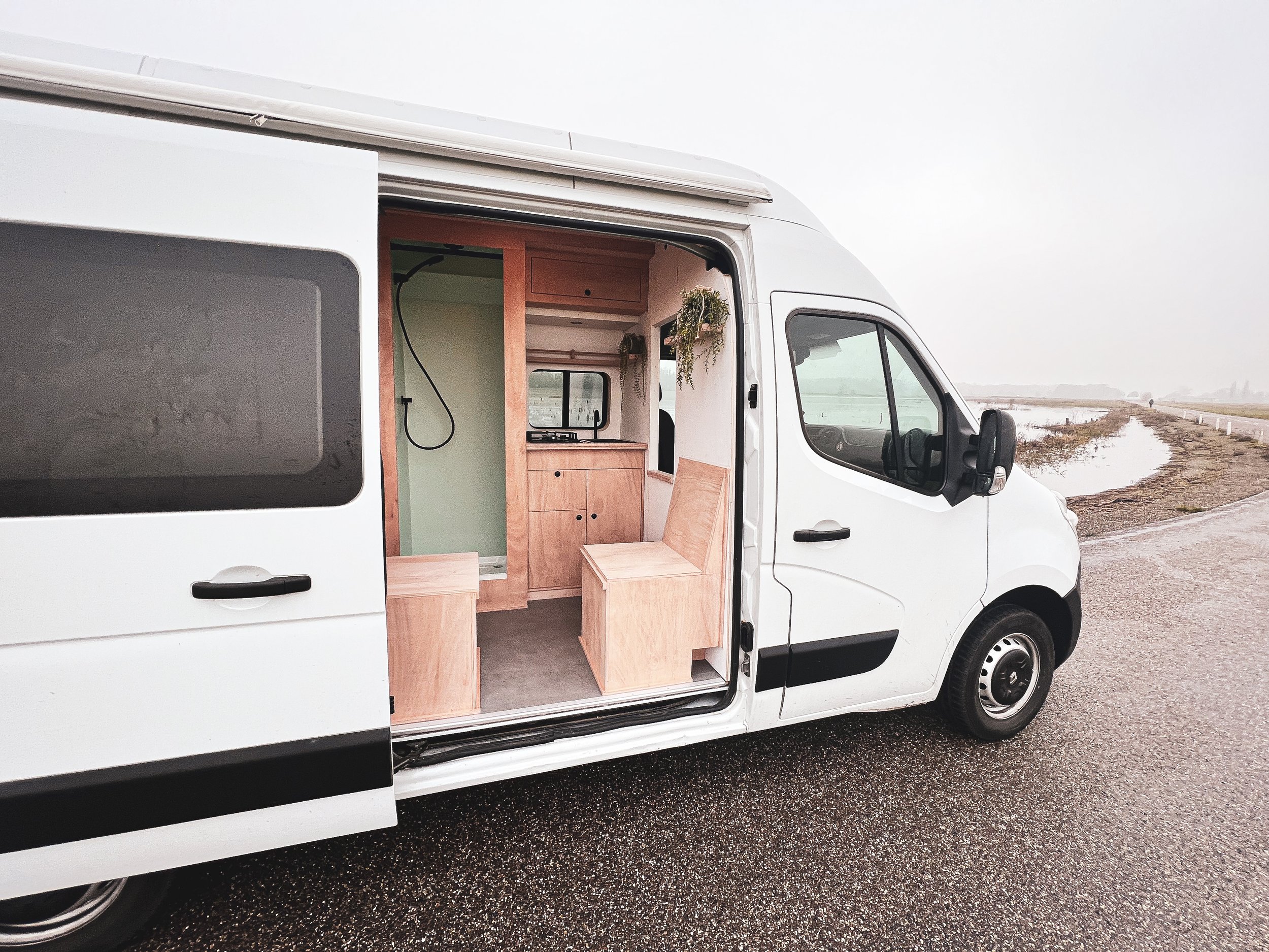 Deze prachtige Renault Master hebben we gebouwd voor Wesley en Leana. Een L2/H3 waar een vast bed, keuken, douche en zitruimte in moest. Compact, comfortabel en luxe. Met een electra en water systeem waarmee je meerdere dagen off-grid kan staan. Al met al een prachtige bus klaar voor vele avonturen. Deze bus gaan ze zelf verder aflakken en afwerken.